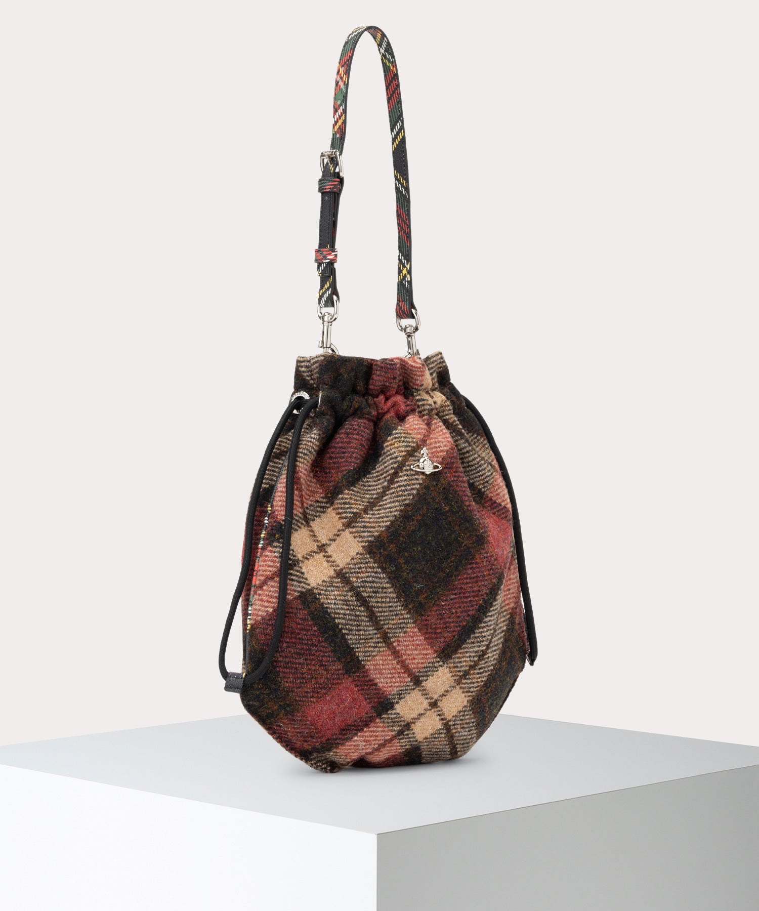 🎀 【預訂】Vivienne Westwood HARRIS TWEED CHECK DRAWSTRING 斜紋布抽繩包
